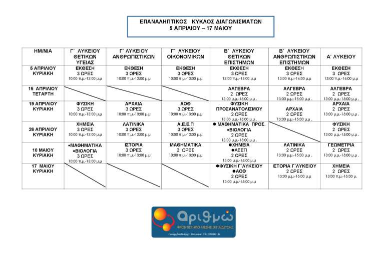 • Εξοικείωση στις γραπτές εξετάσεις μέσα απο τους κύκλους των διαγωνίσματων του Αριθμώ .